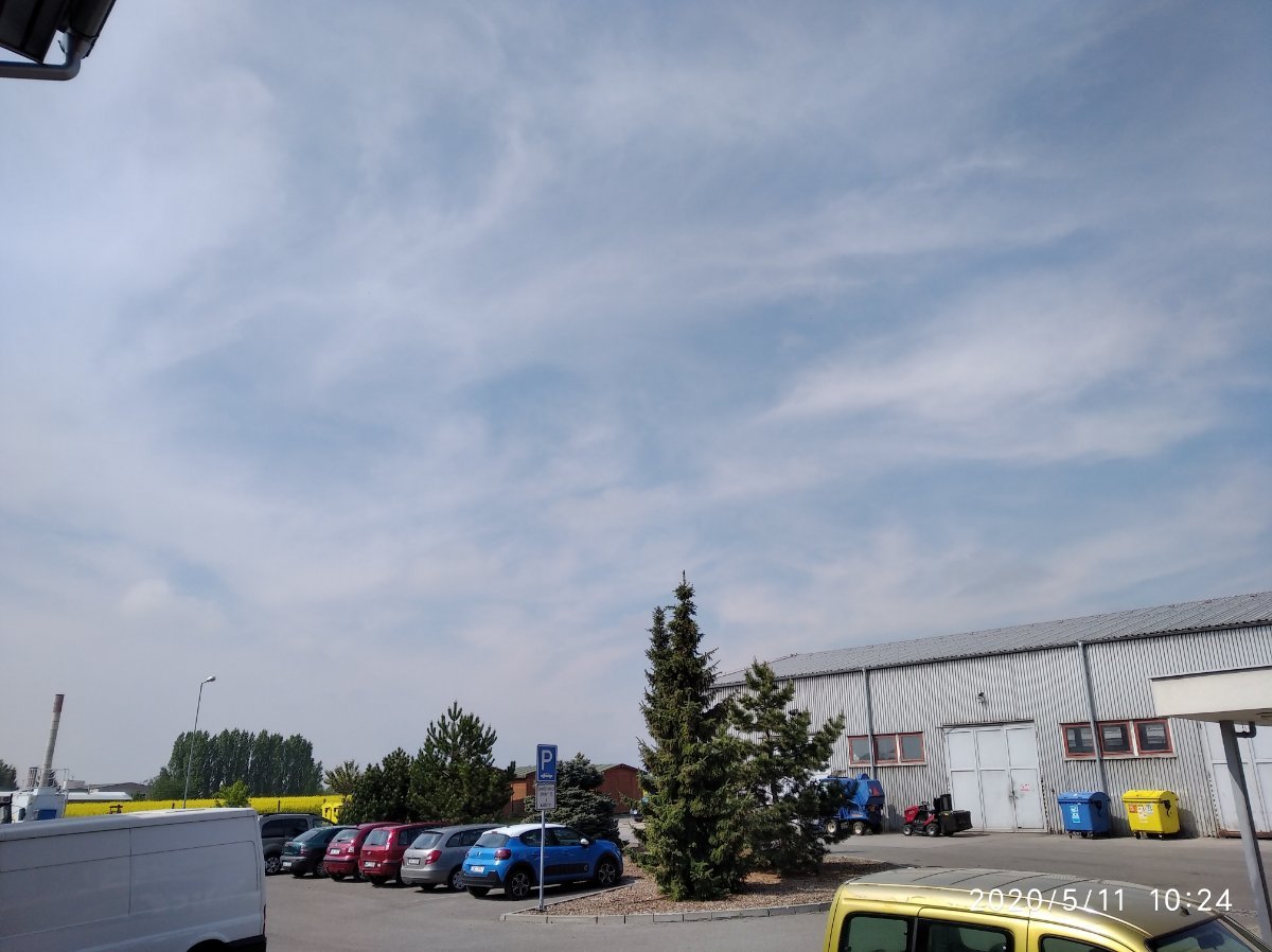 Tlak 1000,5 hPa - nadále klesá. Slabý vítr. Polojasno vysokou oblačností.