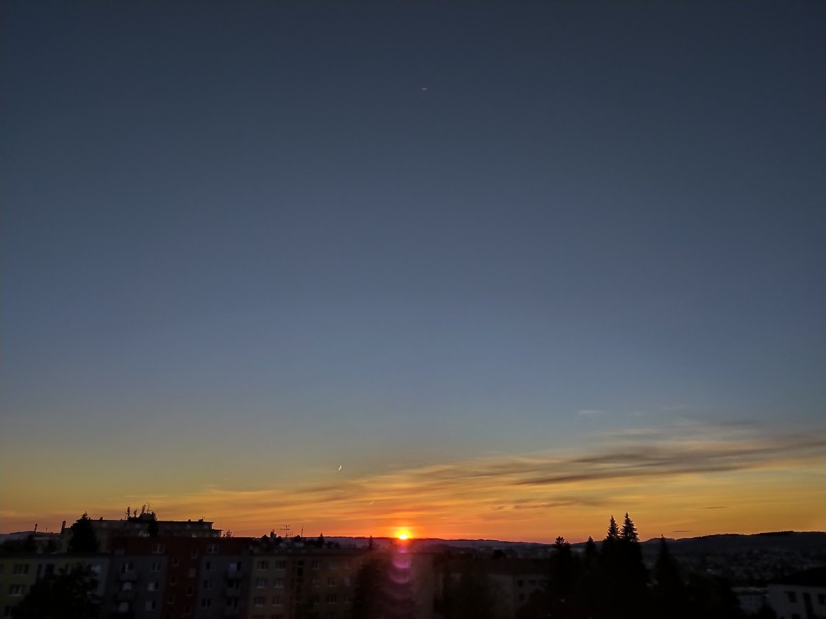 Aktuálně převažuje většinou skoro jasno a fouká většinou vánek až slabý vítr