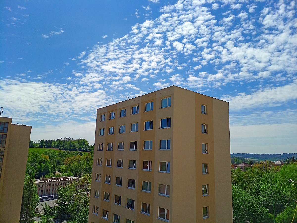 Slabý vítr. Občas skoro jasno, občas zasahuje od Z. střední oblačnost - viz.foto. Tlak 1023,4 hPa.