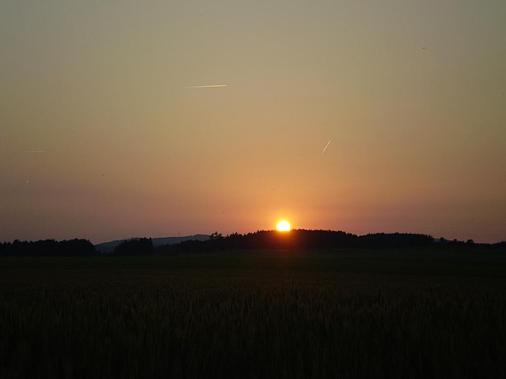 Celý den jasno bez jediného mráčku. Jediné mraky byli vidět z oblohy nad Šumavou. Dnešní maxima se jen sotva dotkli 30.stupňům, výš ale na západě Čech se nedostali. Na fotu naše dnešní práce - seno, balíkování.