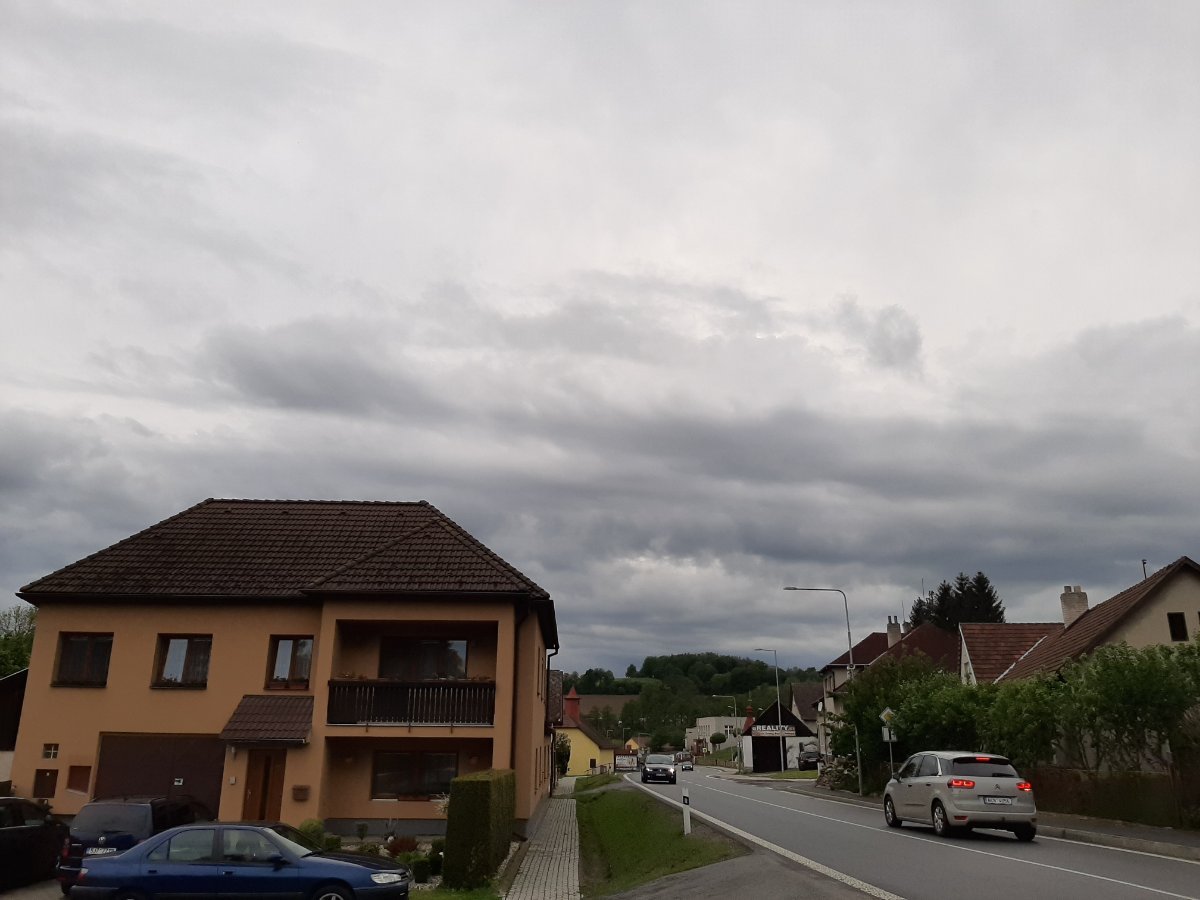 V dálce přešla přeháňka. Aktuálně oblačno. Zatím dnes 0,1 mm.