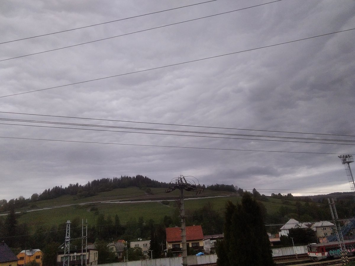 slabý občasný déšť, mírný vítr v nárazech až čerstvý, 10.5°C