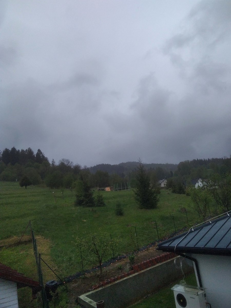 Po krátké ale poměrně silné přeháňce. Napršelo 1,8mm. Vane slabý severozápadní vítr, tlak: 1029hPa.
