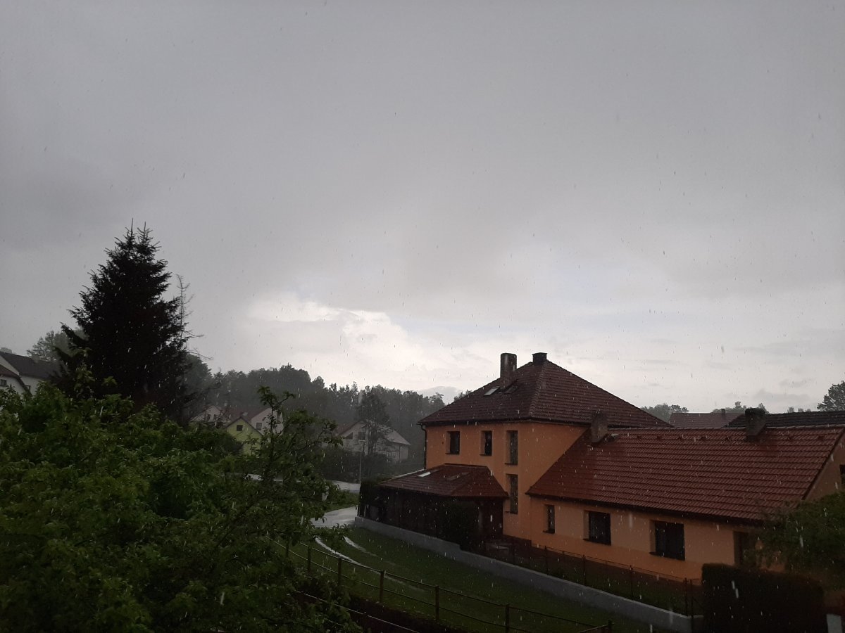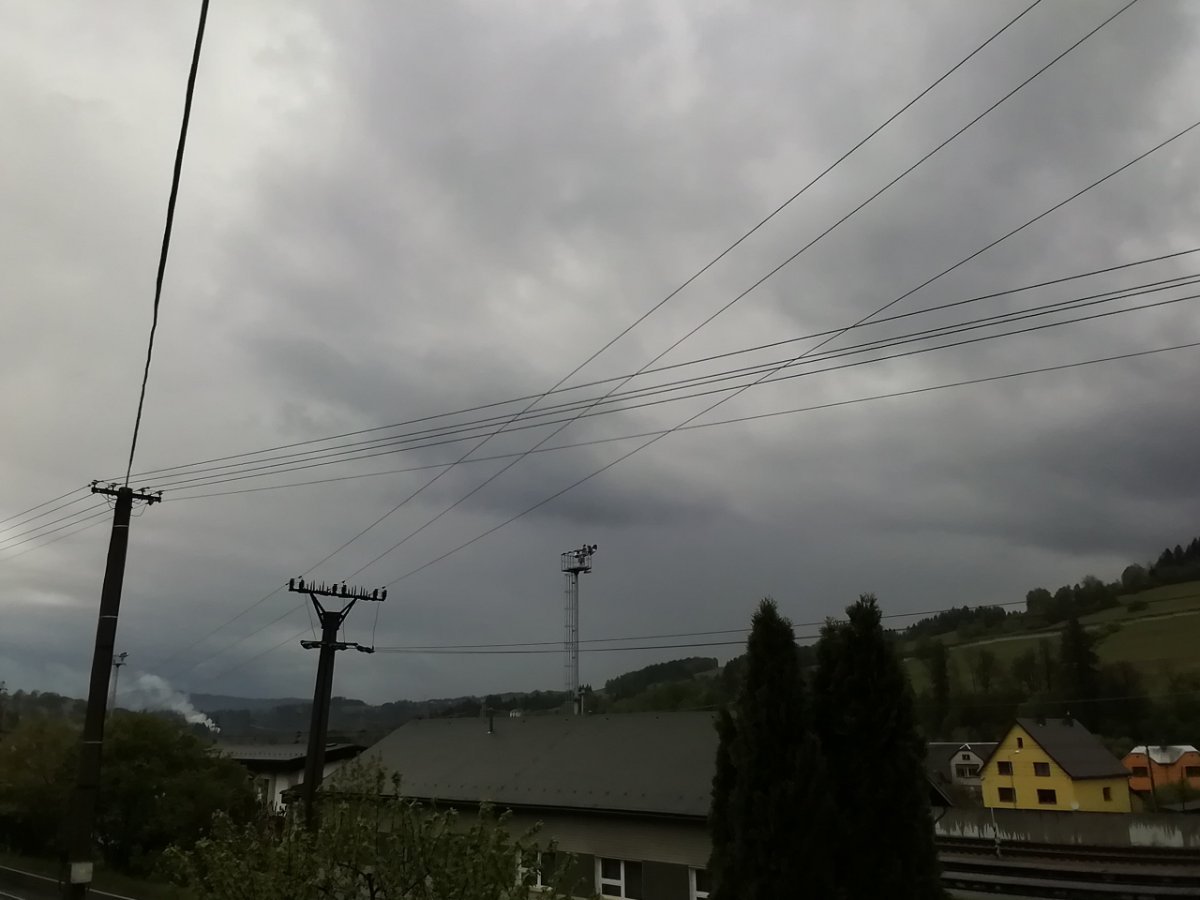 Slabé přeháňky, podle radaru má dojít i silnější déšť, mraky se již trhají, teplota +- 1°C