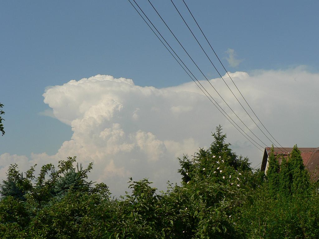 Občas se přežene menší průtrž mračen, je ale neskutečné dusno, díky přeháňkam. Nedá se vůbec dýchat. Na fotu bouřková oblačnost směrem k Šumavě.