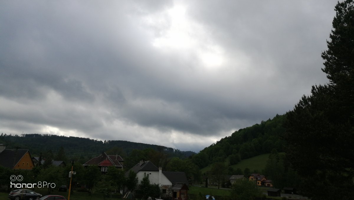 Skoro zataženo, mírný severní vítr, tlak 1022 hPa.