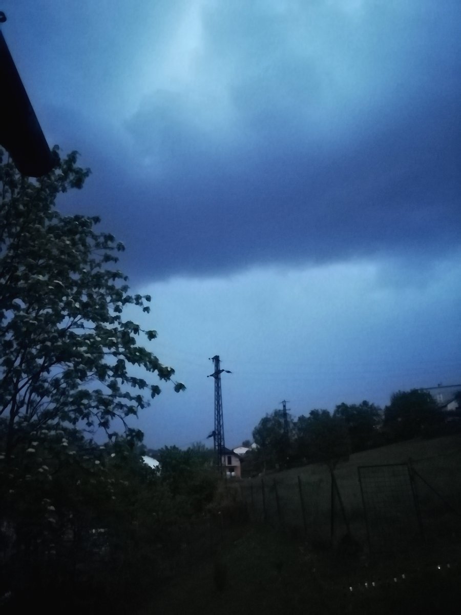 Silná bouřka s přívalovým deštěm.