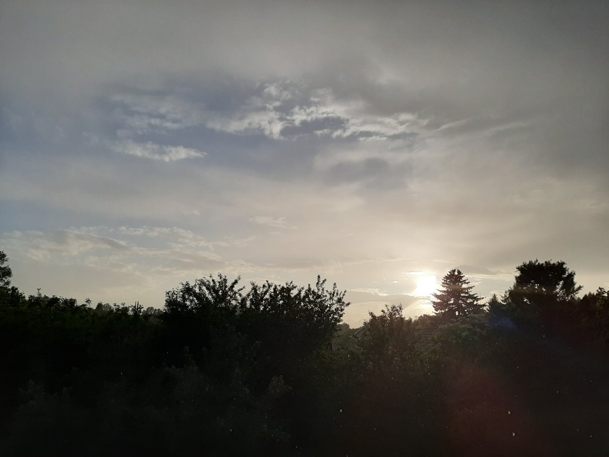 Všechny odpolední přeháňky a bouřky nás obešly. Polojasno, severní vánek 1,8 km/h, tlak 1009 hPa, vlhkost 85 %. Dnešní maximum bylo 27,3 °C.