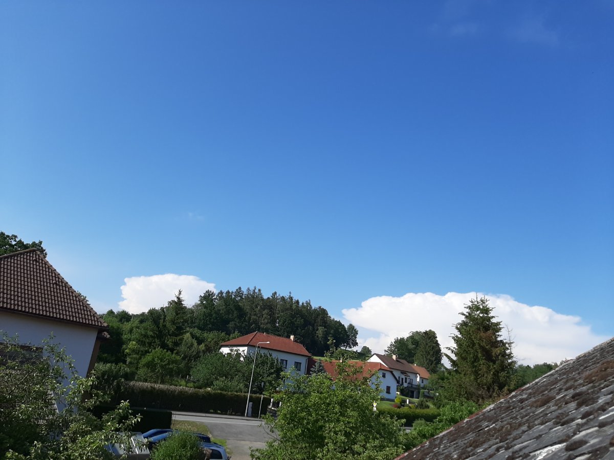 Slabý vítr. Tlak 1008,9 hPa - vyrovnaný stav. Dnes zatím beze srážek.