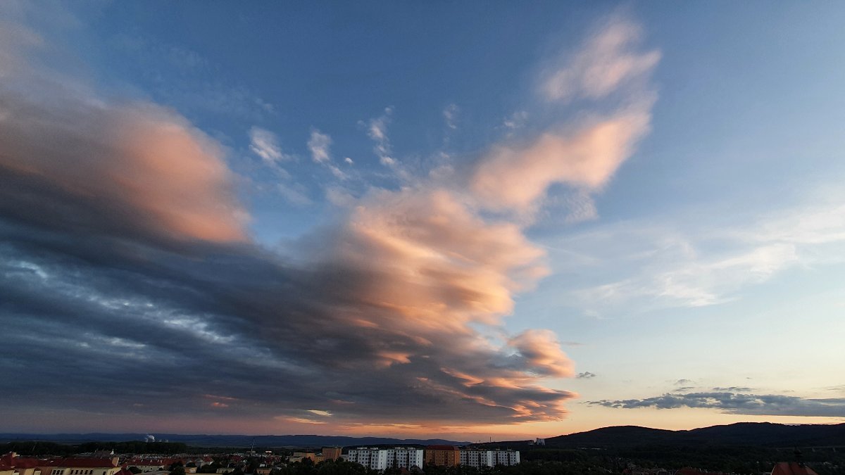 Aktuálně převažuje většinou skoro zataženo od západu se trochu protrhává oblačnost a fouká většinou slabý vítr
