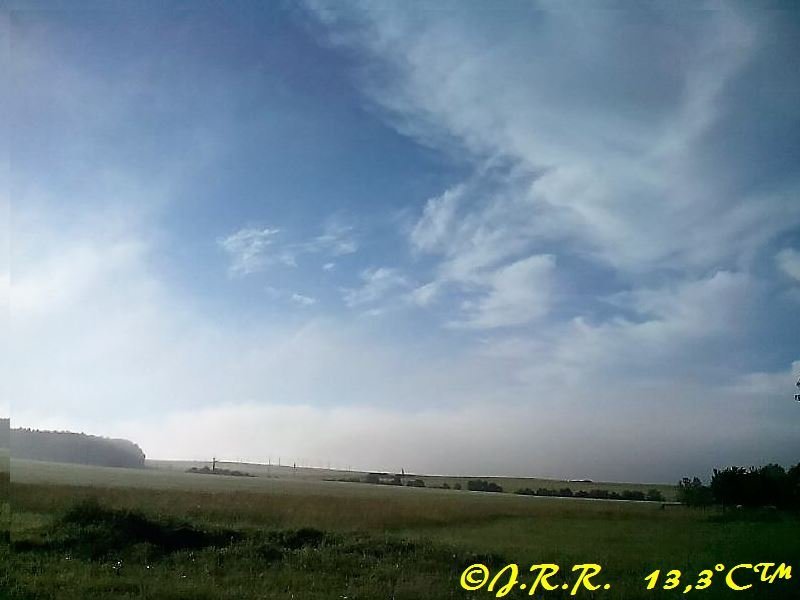 Přízemní mlha,vánek,tlak 1025 hPa,vlhkost 83%