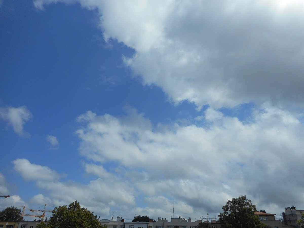 Je slabá přeháňka a vane slabý vítr. Je velký dusno.