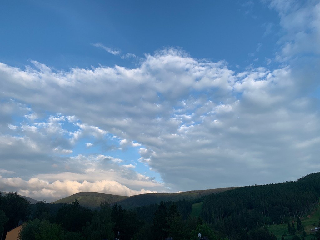 Bouřkový oblak u Prachatic je patrný i z Plzně