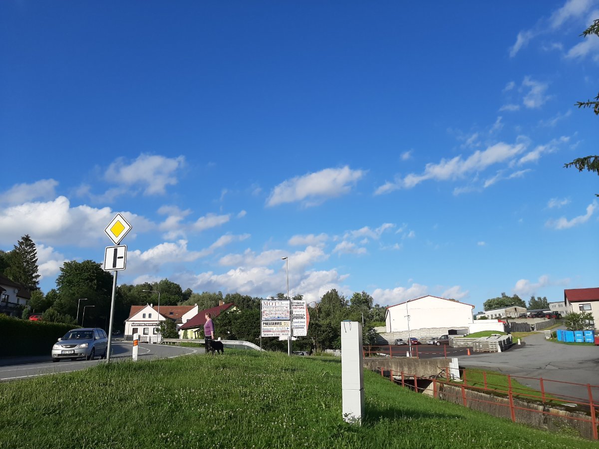 po vydatném dešti přetekl trochu rybník, 18.5°C
