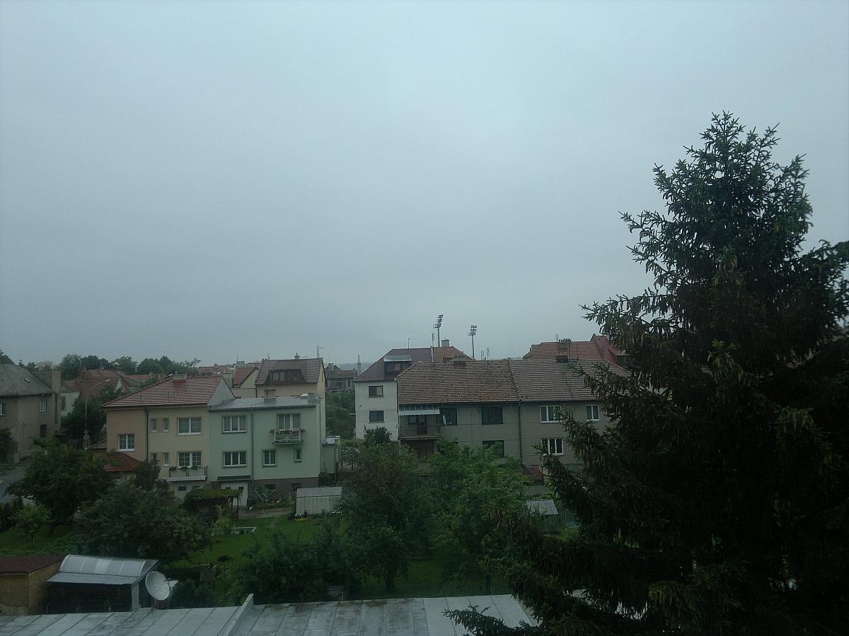 Prší(1.5 mm/h), vítr 4.1 m/s, tlak 1012.5 hPa a vlhkost 94.6%. Hladina řeky Moravy stoupá po centimetrech. Zatím 161 cm.