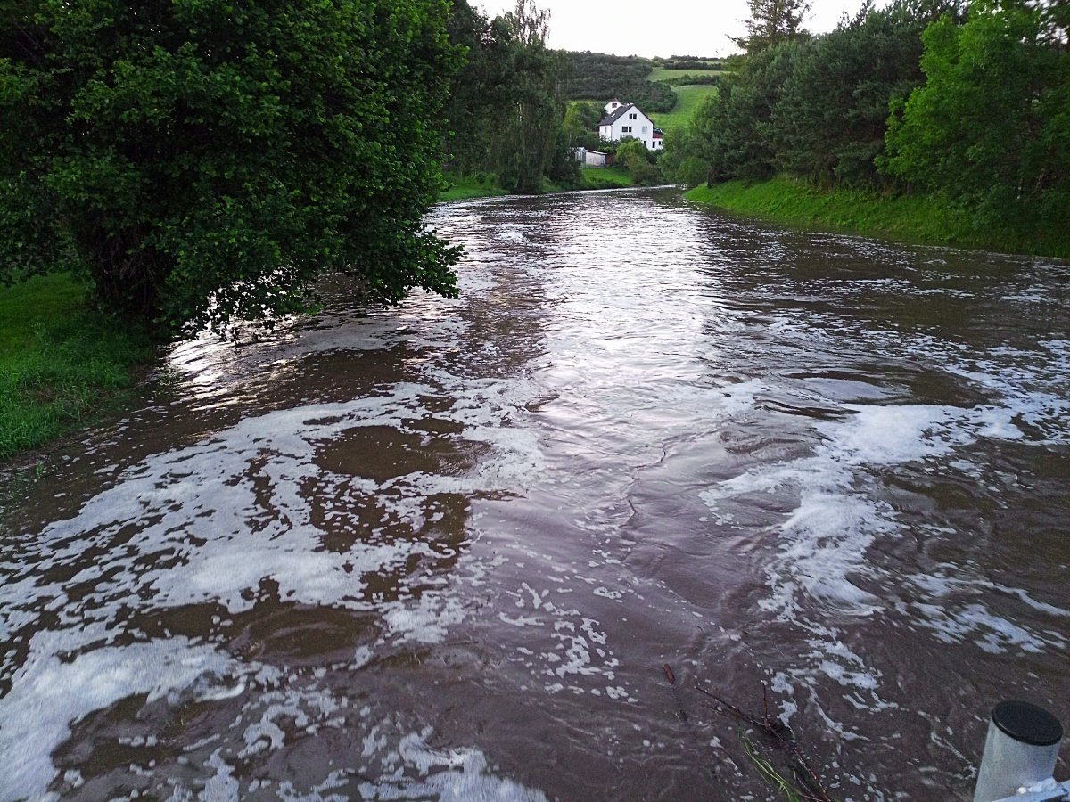 řeka Jihlava téměř na 2.SPA / výška hladiny po 21:00h, 275cm // 1.SPA=220cm, 2.SPA=280cm // jasno 15°C V Poušově pod Borovinou