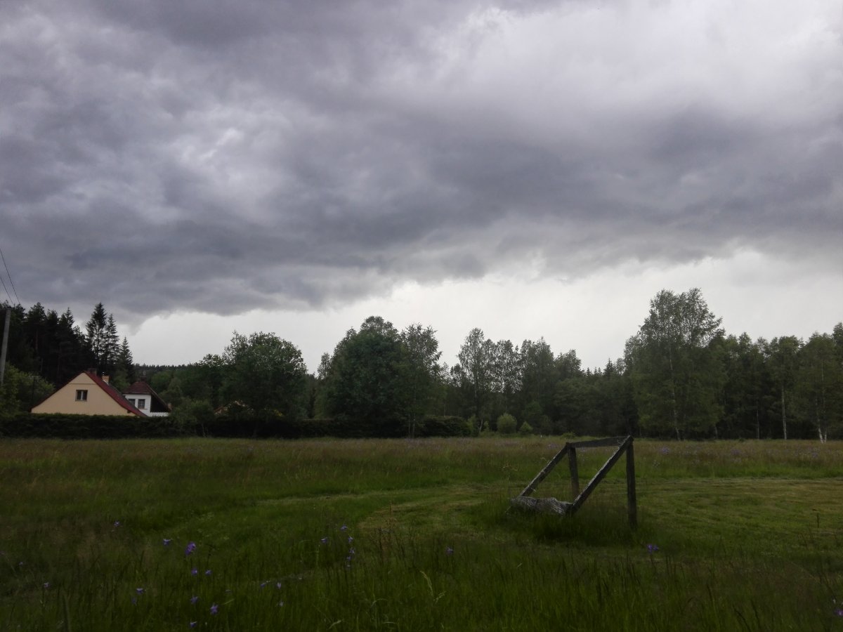 v okolí bouřka tady zatím jen slabý déšť, max. 26°C