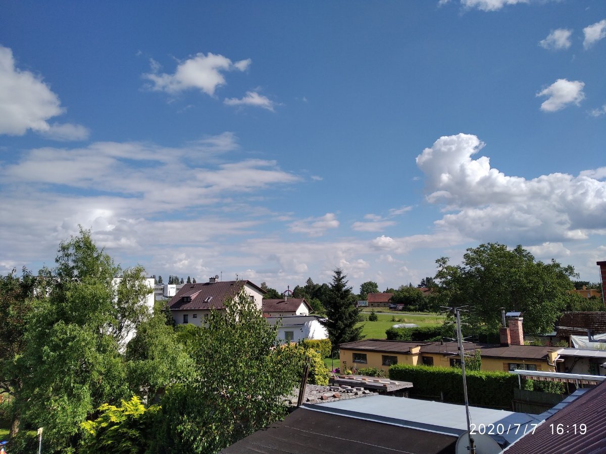 Mírný západní vítr. Oblačno až polojasno. Chladno. Tlak 1019 hPa.