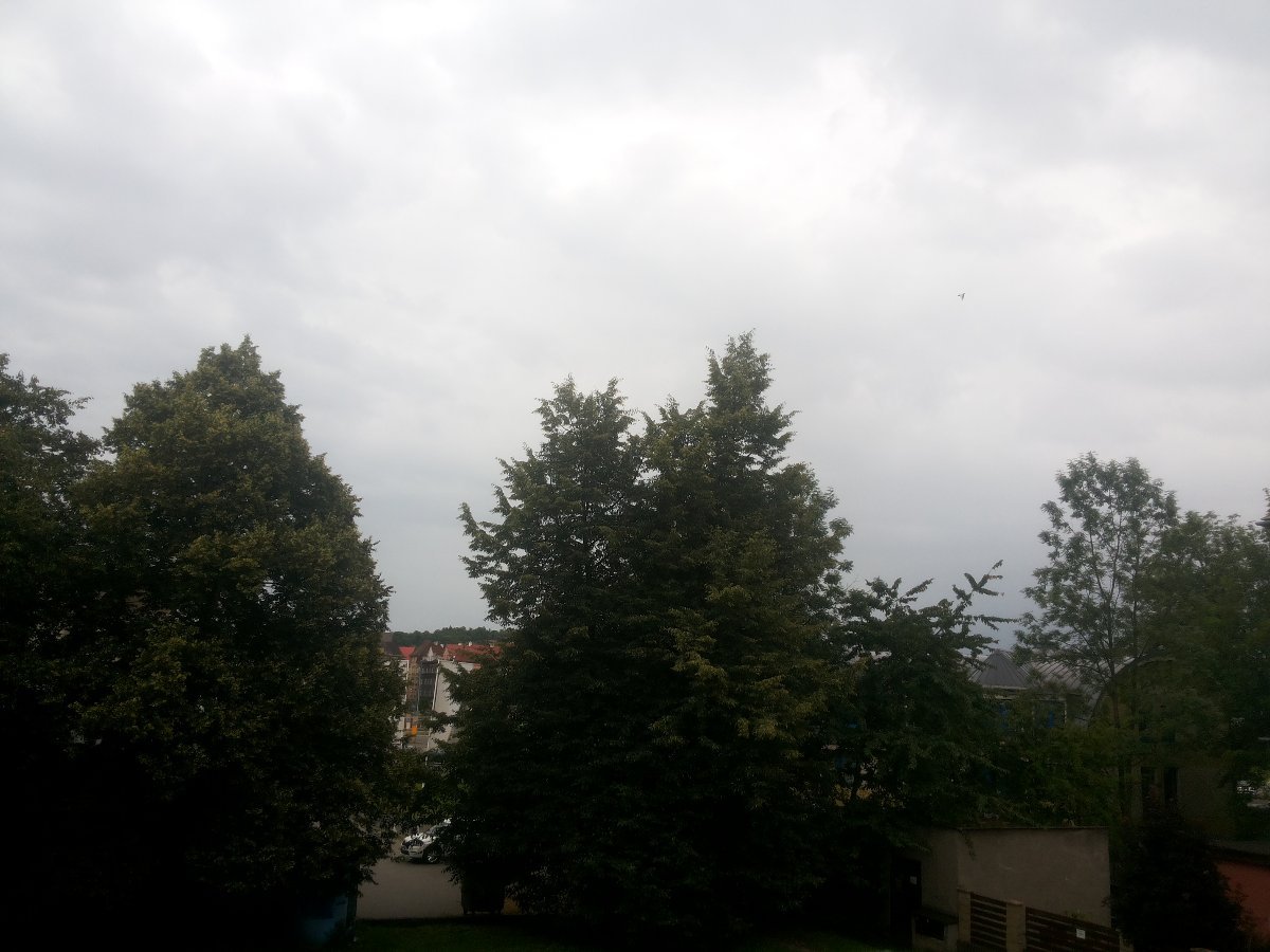Trvalý slabý déšť. Klidno nebo jen slabý vítr. Tlak 1017,3 hPa.