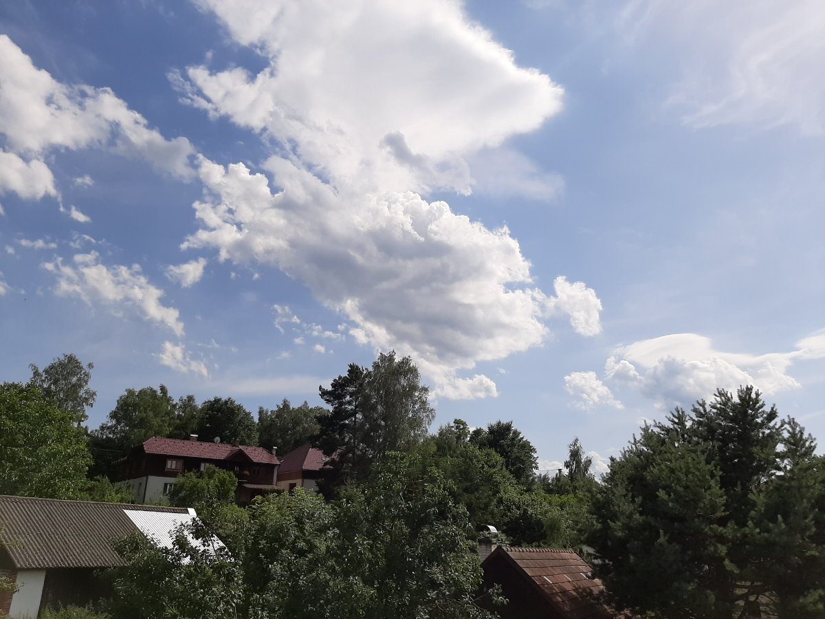 na J bouřka, fouká až slabý vítr , město nezasáhla,šla jihem a pokračovala kolem Mostu