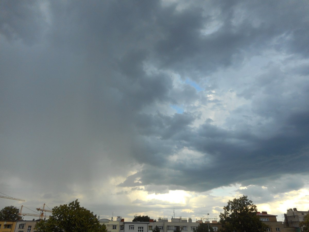 Slabý vítr. Významný nárust oblačnosti. Blíží se srážky. Tlak 1009,1 hPa.