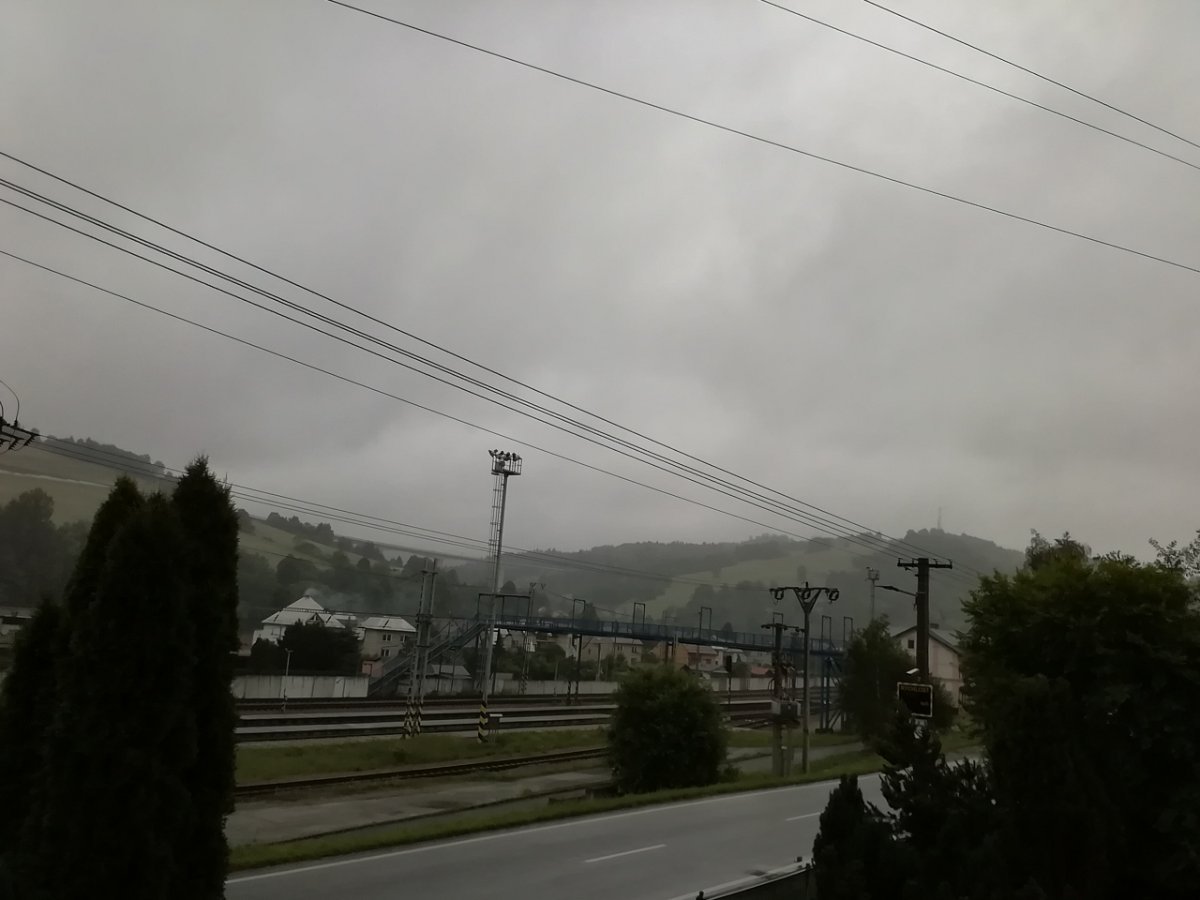 Zamračené, slabý dážď, slabá búrka