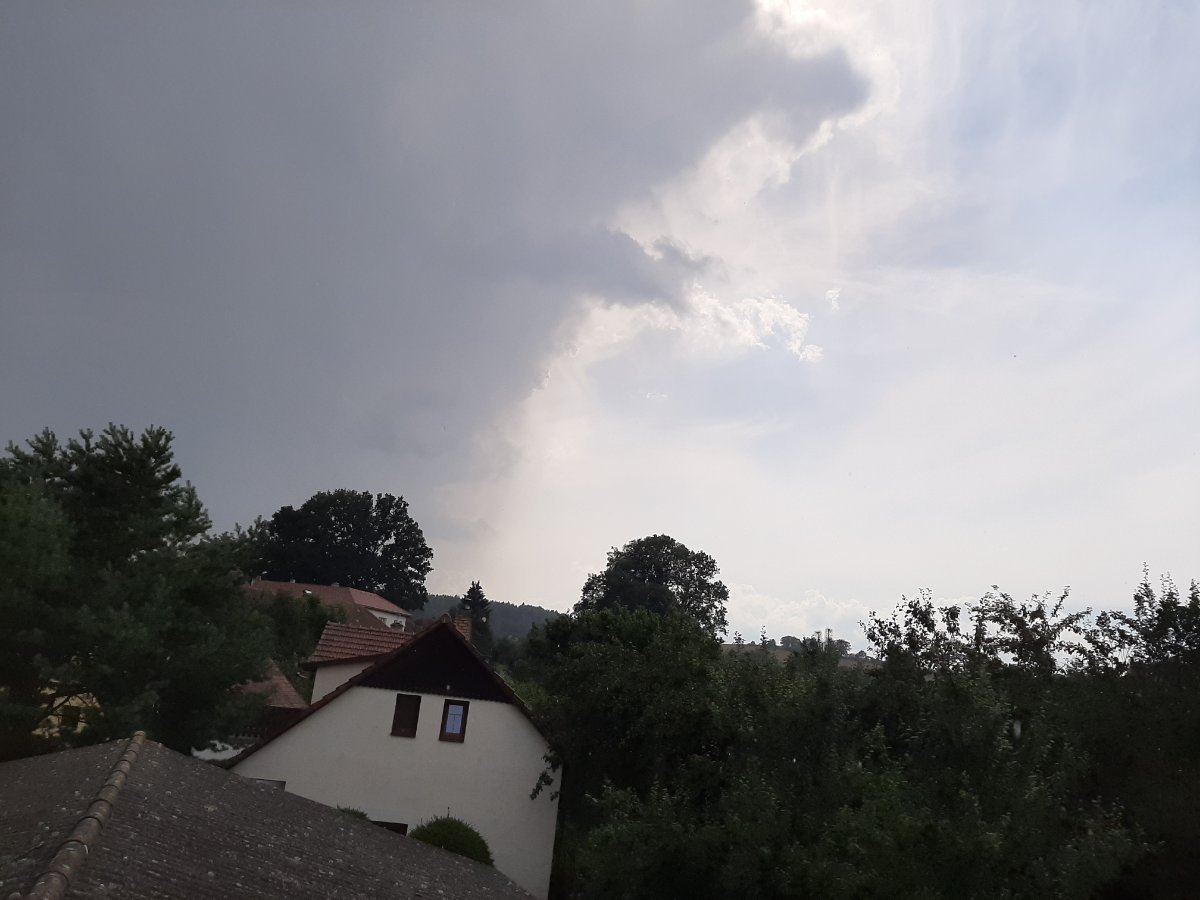 Silná průtrž mračen, nedá se vylézt z auta...