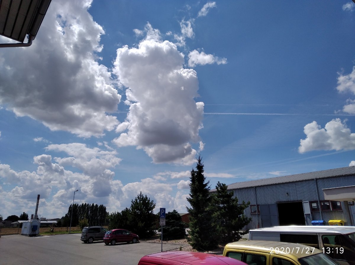 kupovitá oblačnost , dohled 20 až 25 km , J až JZ vítr 2 až 5 m/vt , tlak 1019 hPa ...