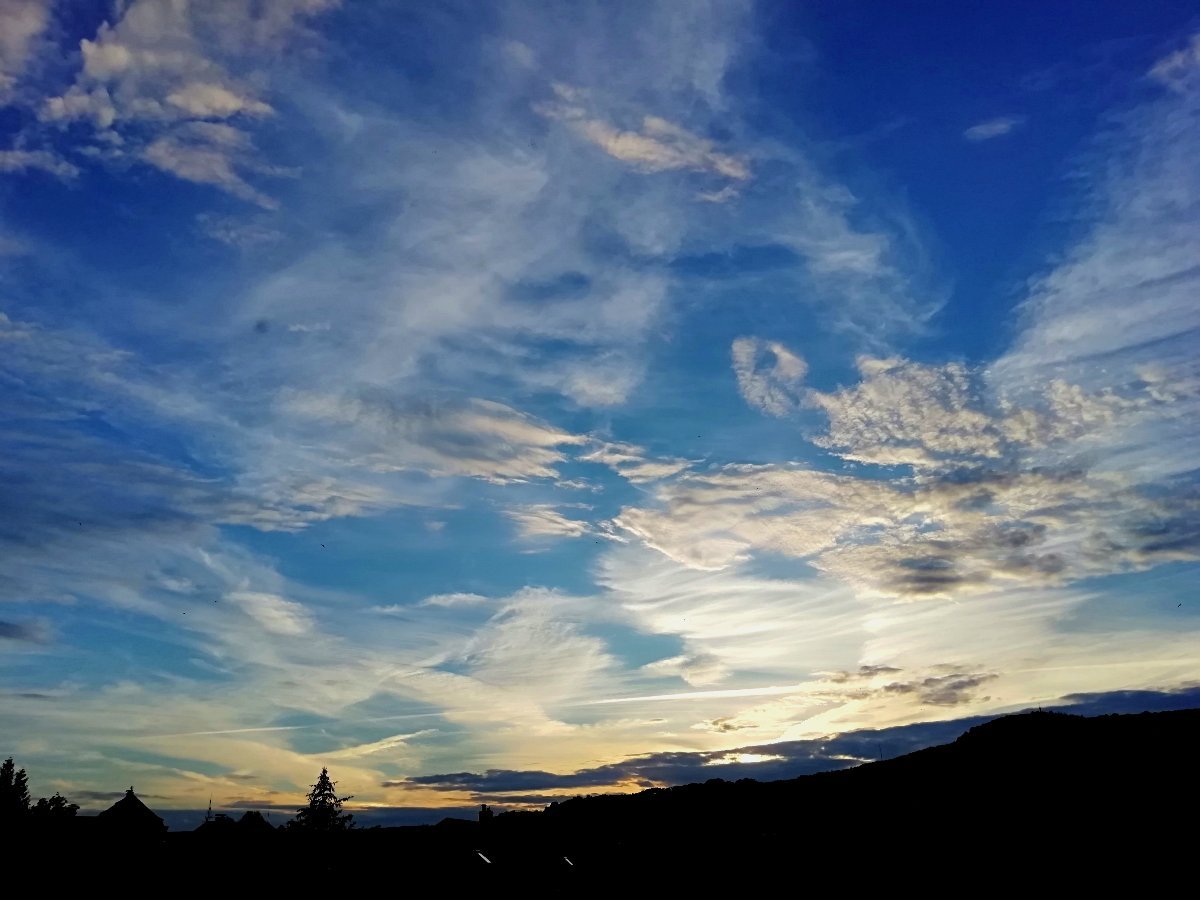klidno, bezvětří až vánek," vysoká oblačnost "