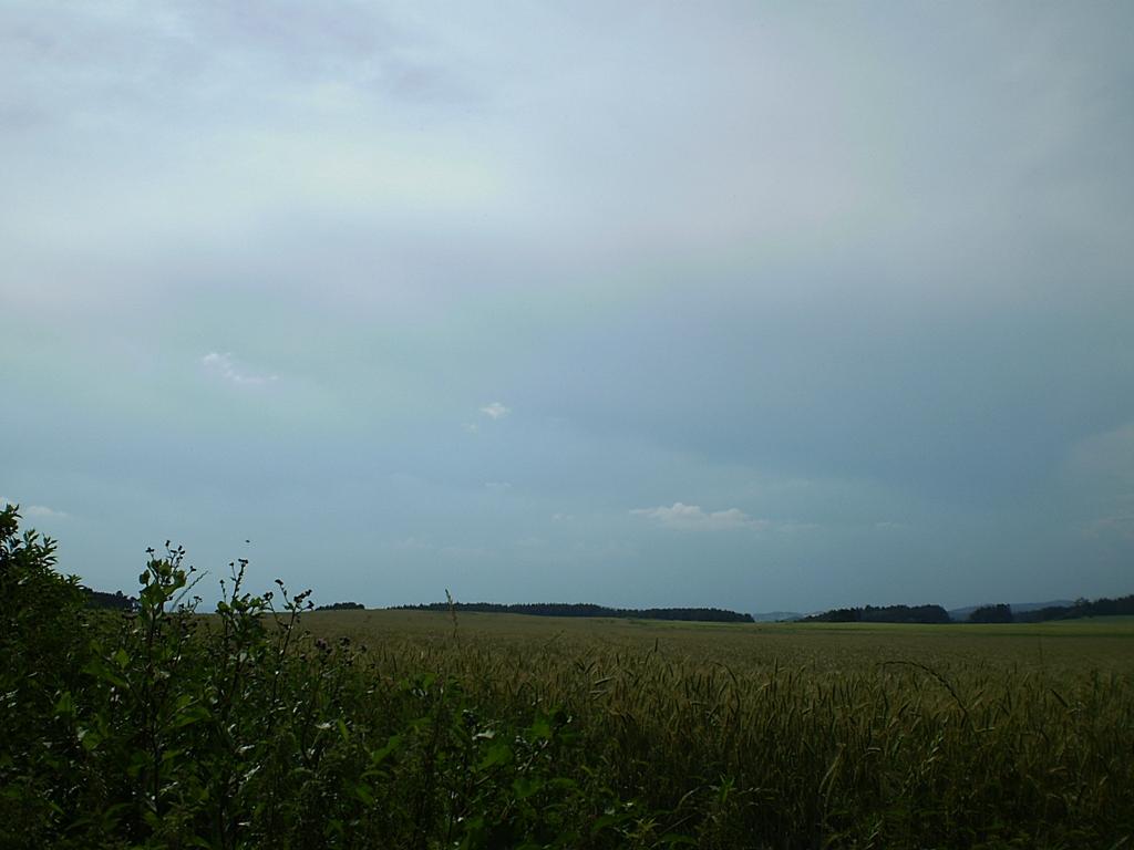 Vítr 0,2 m/s, od jihovýchodu ubívání oblačnosti, před 45 minutami sprchlo pár kapek