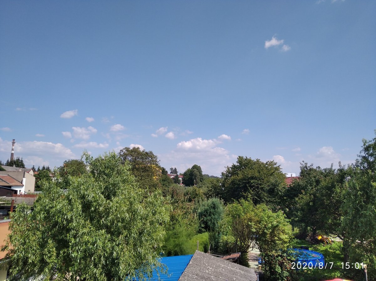 2020 08 07 v 14:34:31 sem tam mráček - žádný však nemá cestu přes sluníčko - to hřeje - teplota stoupla na +30°