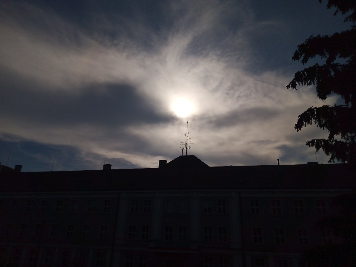 Aktuálně převažuje většinou polojasno až polooblačno a se silnou dešťovou přeháňkou z ničeho nic jen nad náma je velký černý mrak a fouká většinou slabý vítr
