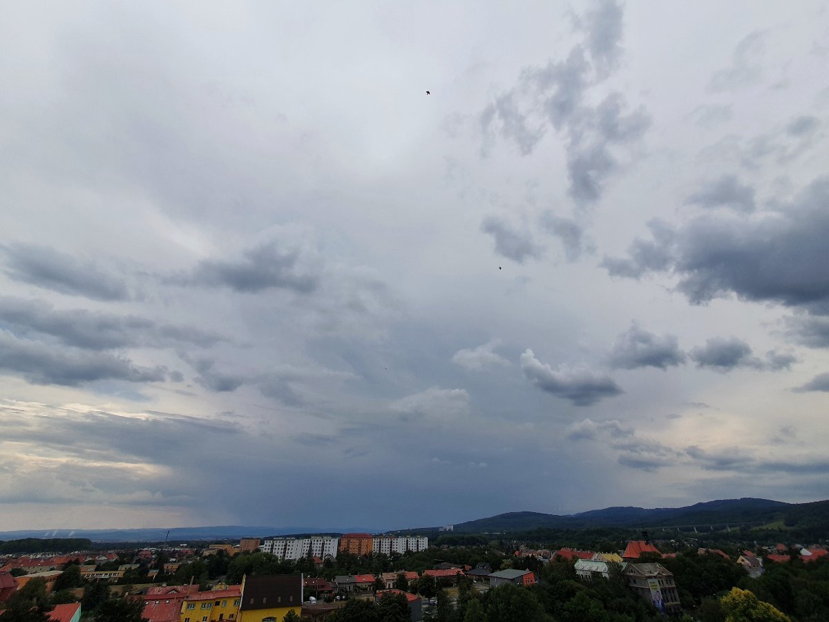 Dešťová clona se přesouvá přes Plzeň.