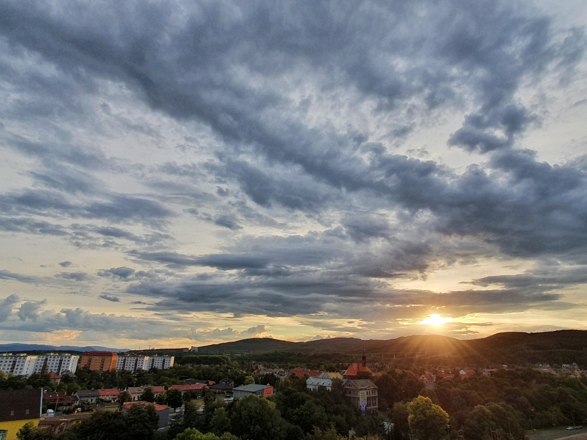 Slabý vítr. Tlak 1009,6 hPa.