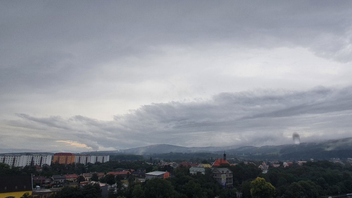 Oblačno, SZ mírný vítr, tlak 1019 hPa.