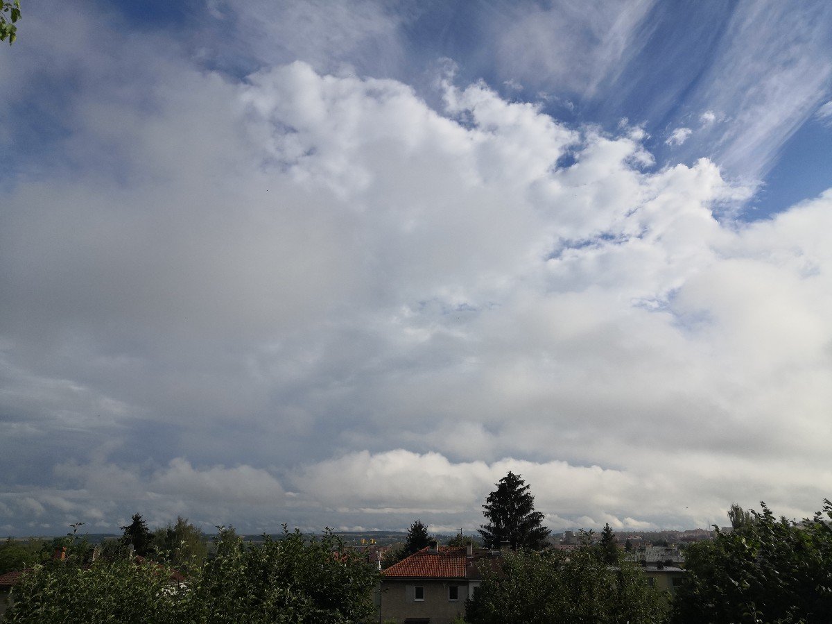 Aktuálně převažuje většinou skoro zataženo a fouká většinou slabý vítr, je cítit voda ve vzduchu přeháňka se vytvořila ale na V od nás tady pořád nic!