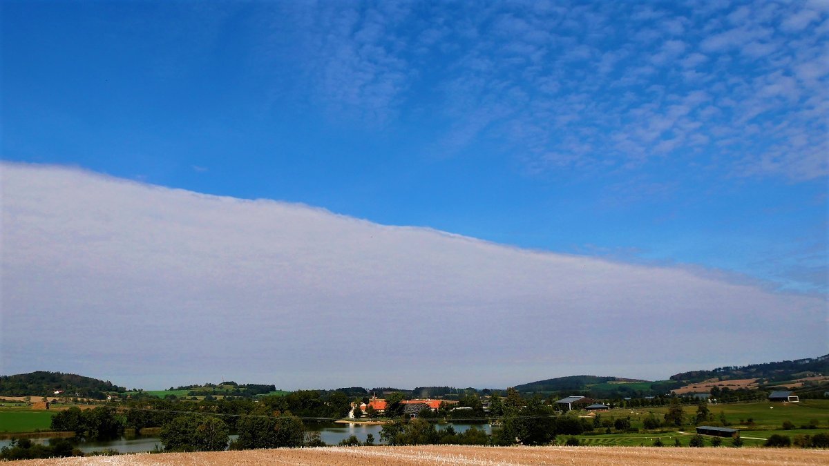 2020 09 11 v 16:50:09 nad hlavou modrá obloha na obzoru mráčky +22° docela dusno