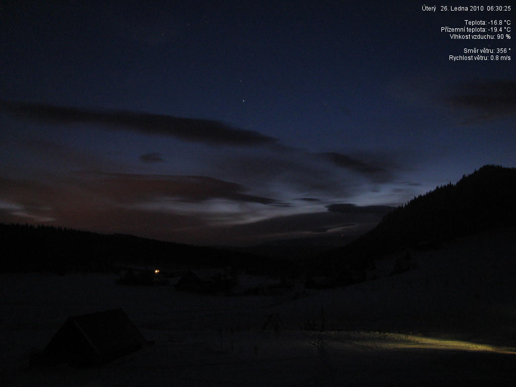 Úterní ráno je zatím oblačné. Sníh 30-50 cm. V provozu bude opět 7 vleků. Stopy pro běžkaře jsou upraveny. Více na www.skicenkovice.eu
