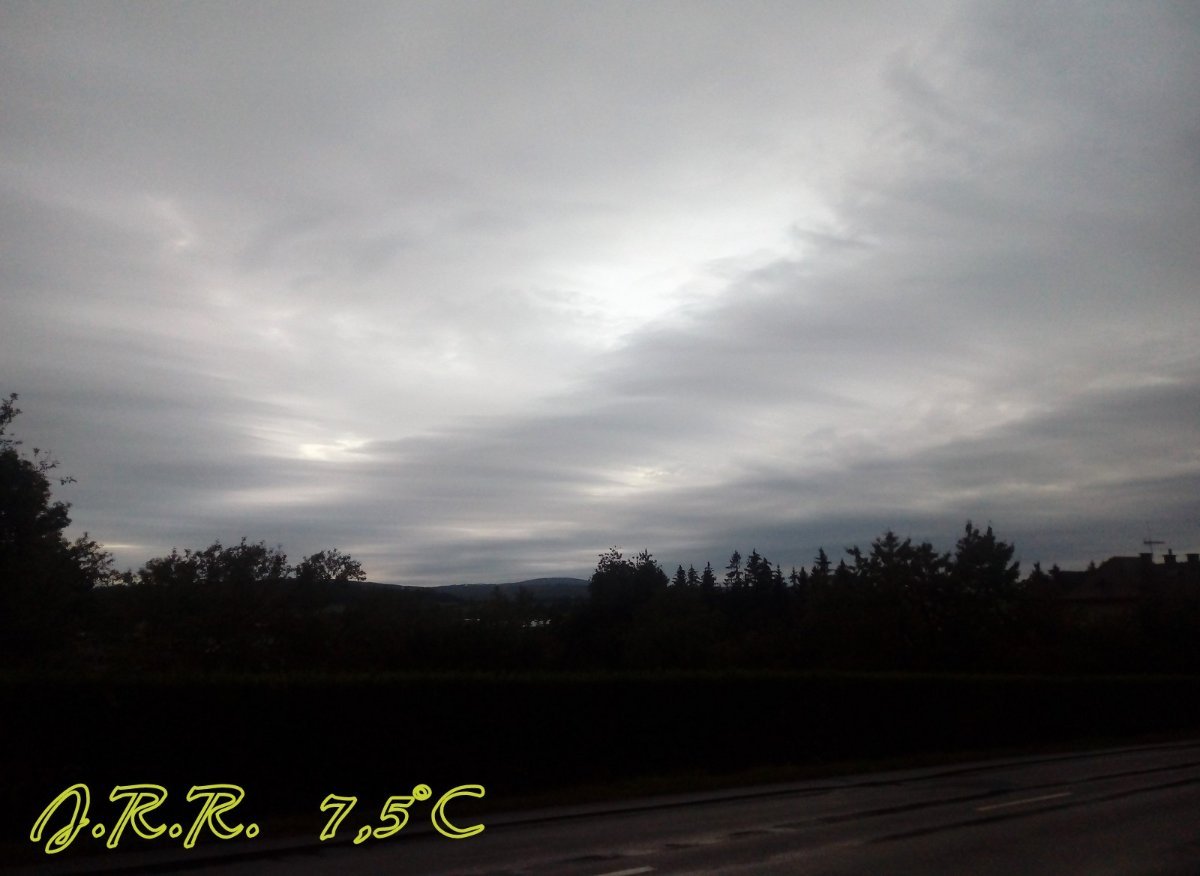 Aktuálně převažuje většinou zataženo a trvale slabě až mírně prší zatím 0.4 mm srážek a fouká většinou vánek až slabý vítr