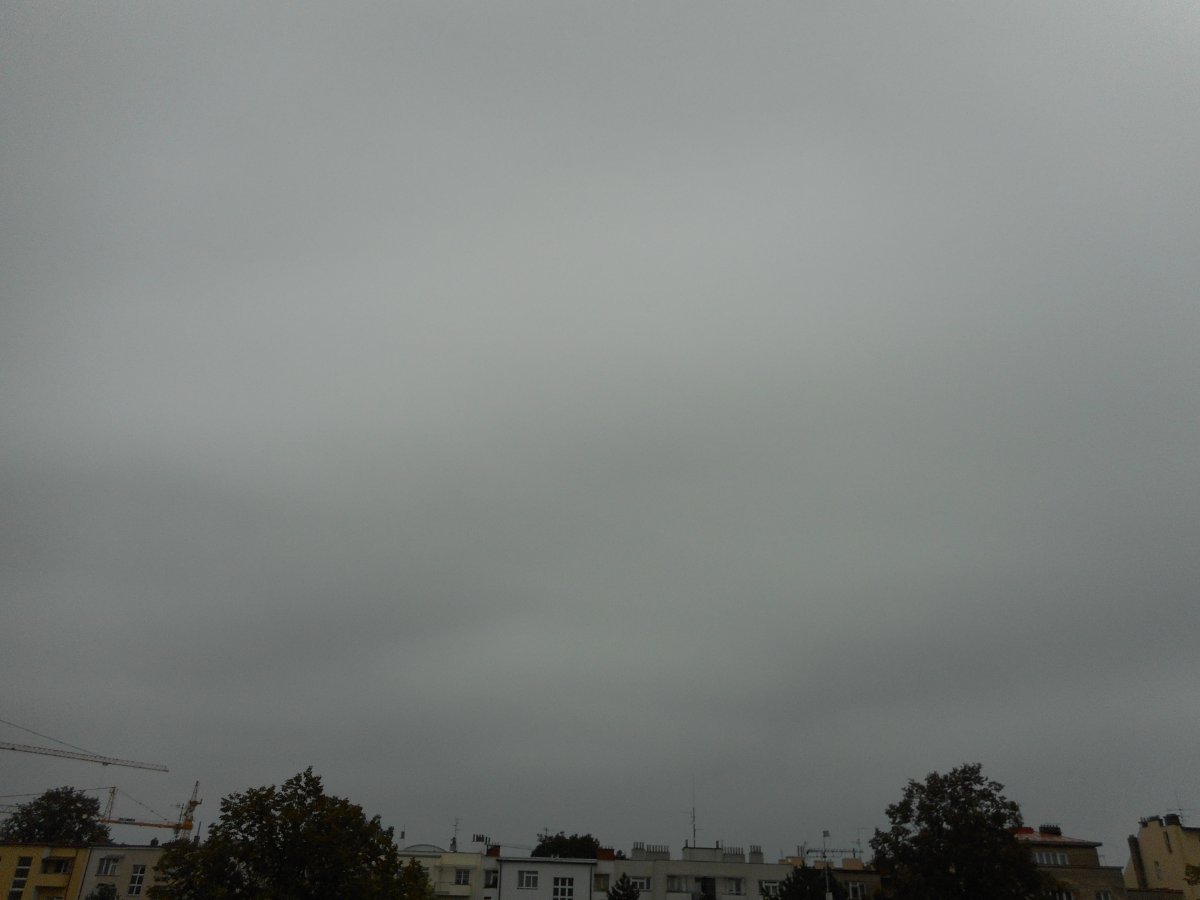 rozpouští se mlha, pomalu se otepluje, v 7:00 bylo 0,1 °C! Teď je krásně slunečno, ale od JV se zase sune déšť
