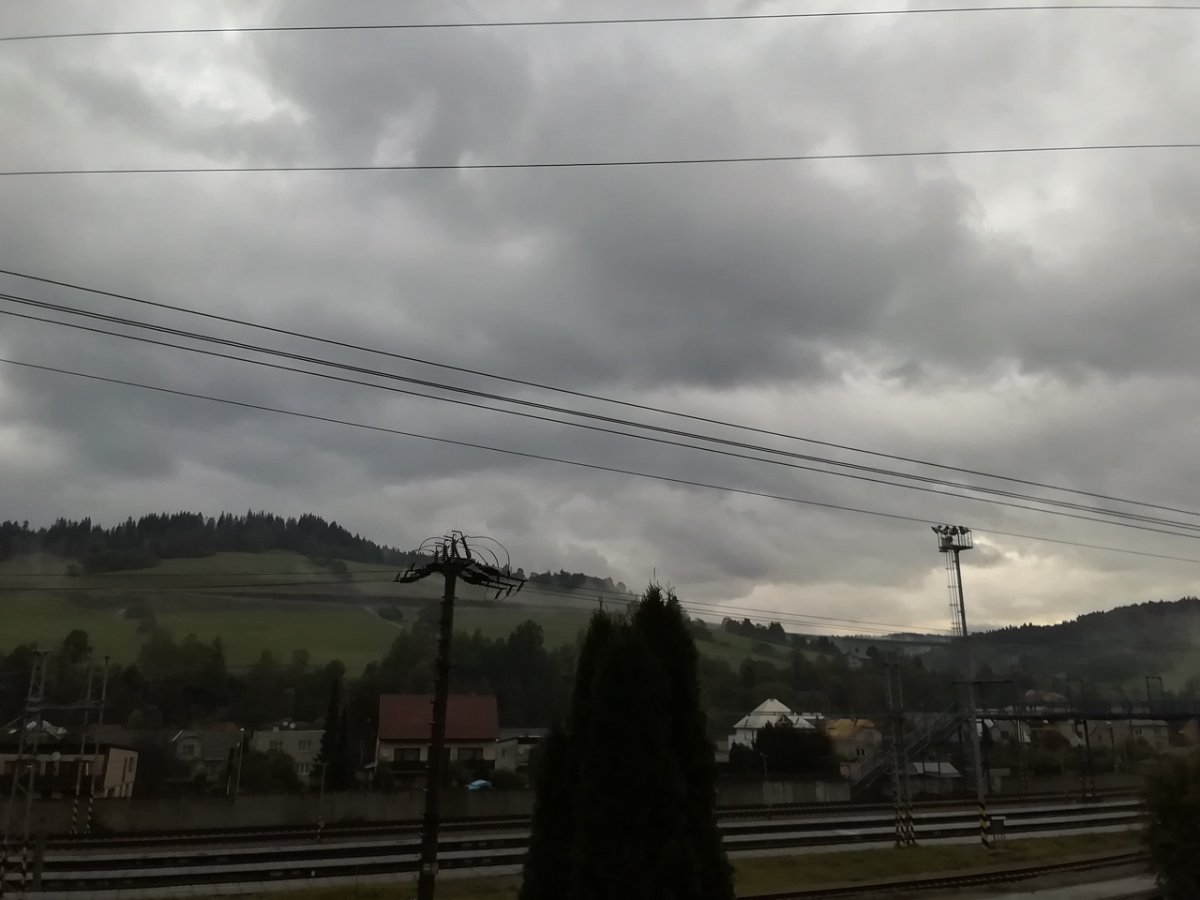 Vydatný déšť(6,75mm/hod.), v noci bouřky, oblačnost 100%, tlak 997,77hPa↓, poc.teplota 10,69°C, tepl.ros.bodu 13,16°C, rel.vlhkost 92,9%, abs.vlhkost 11,43g/m3, dosti čerstvý J vítr 184° 23,904km/hod.(4 Bft), ozon = 290,4D.U., AQI = 18(velmi dobrá kvalita ovzduší), světlo = 44 lx, UV index = 0, včerejší průměrná teplota = 18,83°C.