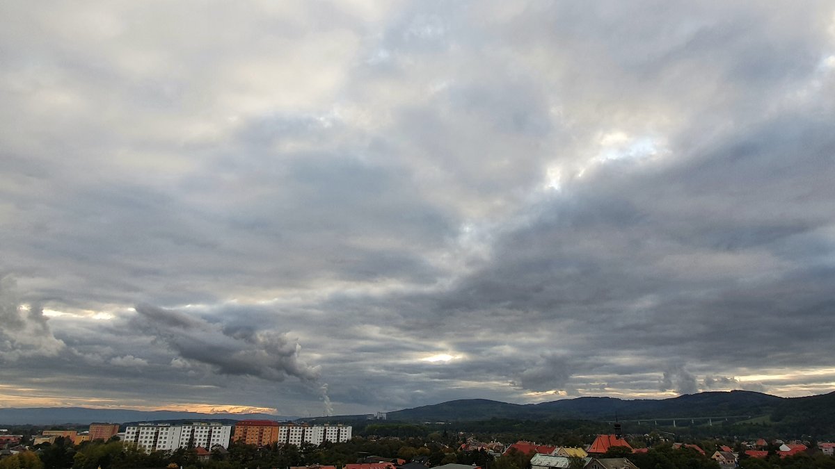 Oblačno, mlhavo, klidno, tlak 1021 hPa.