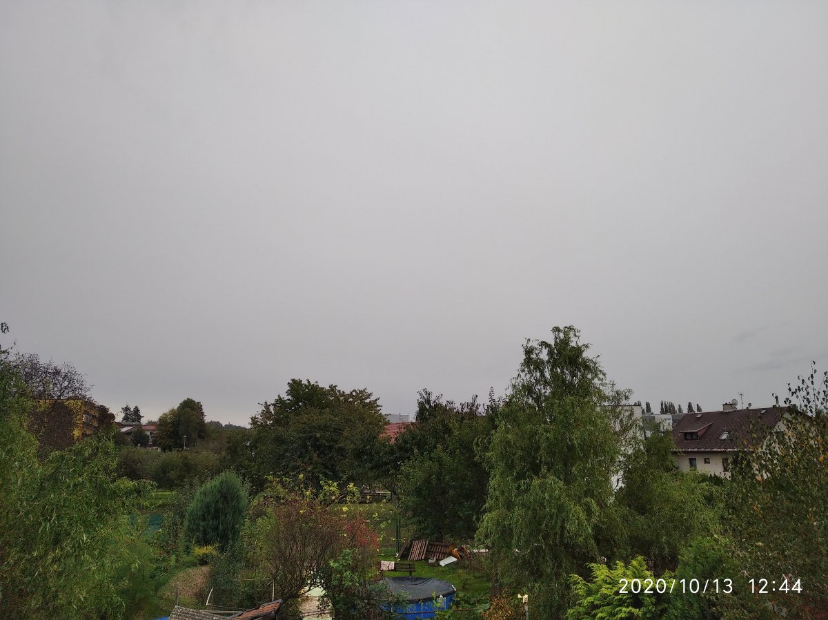 Aktuálně převažuje většinou zataženo a slabě prší dnes zatím jen 0.4 mm srážek a fouká většinou slabý vítr