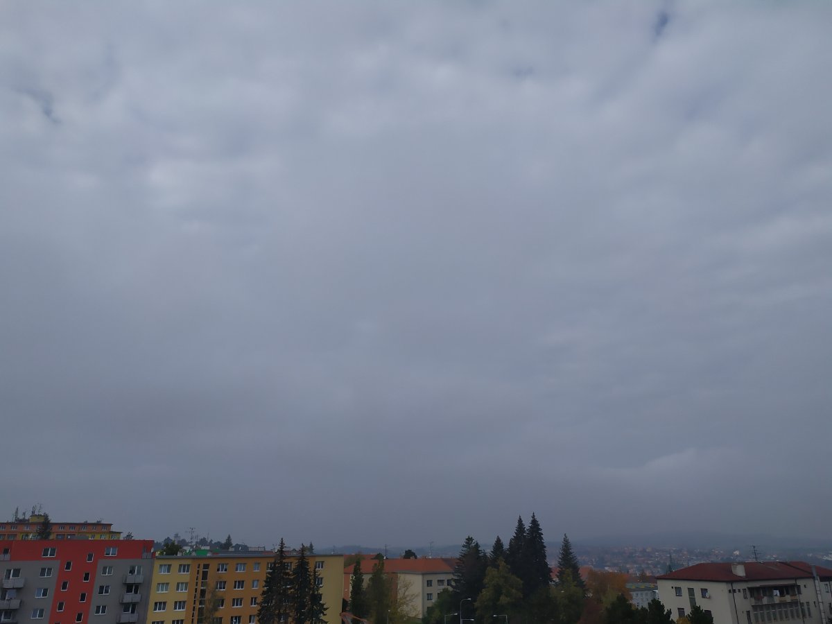 Ráno a dopoledne slabě trvale pršelo a teď sou spíš slabé přeháňky. Vítr vane slabý.