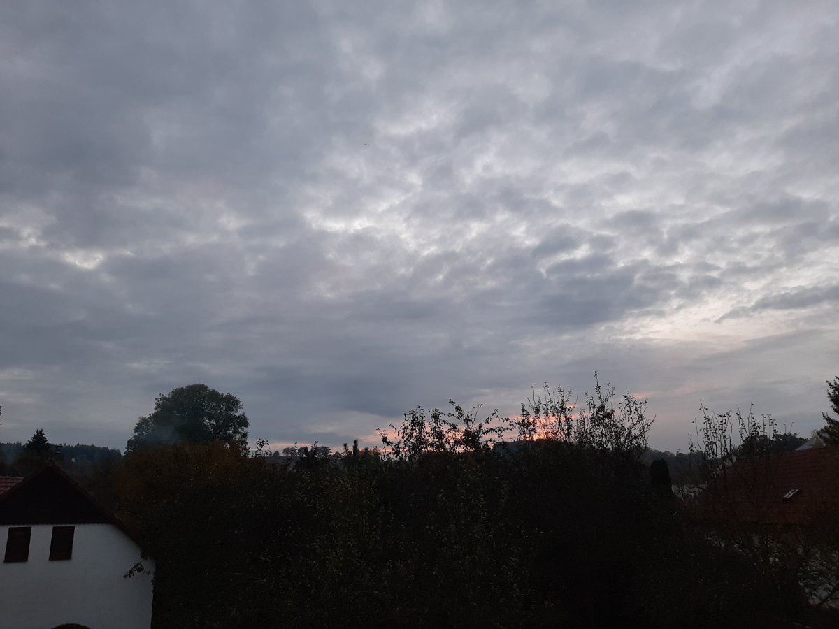 Dopoledne převládalo skoro jasno, poté se pomalu zatahovalo až na aktuální oblačno až skoro zataženo.