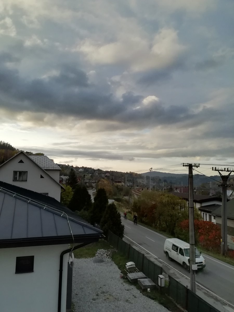 Kolem 13.hod se mlha rozpustila, bohužel ne na dlouho. Již po 14.hod se začala nasouvat zpátky. Fotka z procházky pod kopcem, kde na jedná straně bylo azuro, na druhé straně už nasouvající se mlha.
