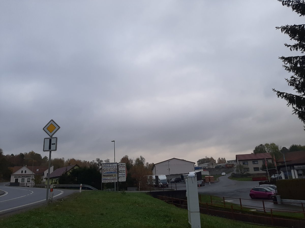 Zataženo, klidno, tlak 1025 hPa.