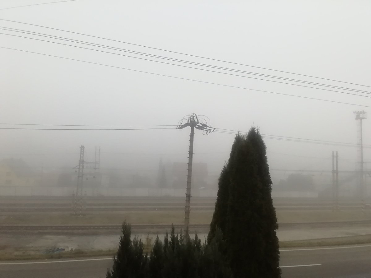 Bezvětří, vlhkost 94%