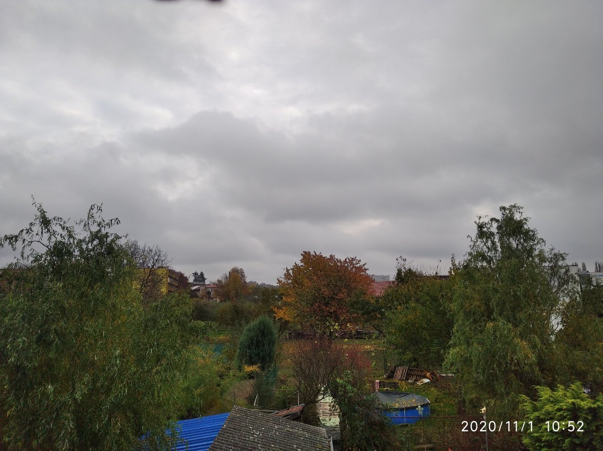 Tlak 1020 hPa, vítr JZ 4,3 km/hod, vlhkost 85%. Nepohoda.