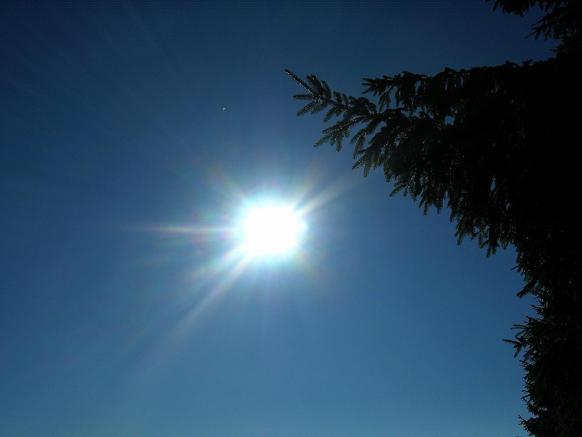 Jasno, na nebi jen dva mraky. Tlak 1013.9 hPa.